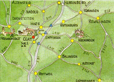 ... und so auch: A81, Ausfahrt Horb In Horb an der 1.Ampel geradeaus auf die B14 in Richtung Sulz, Rottweil bis Neckarhausen, dann rechts ab in Richtung Glatt